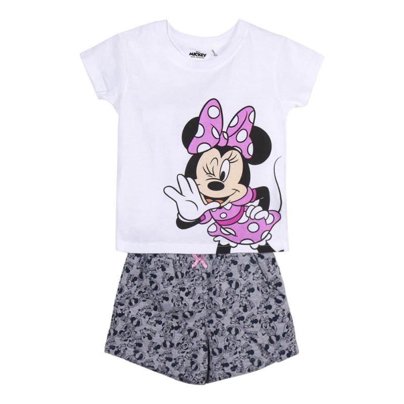 Pijama Manga Corta Minnie Mouse Blanco y Gris Niña