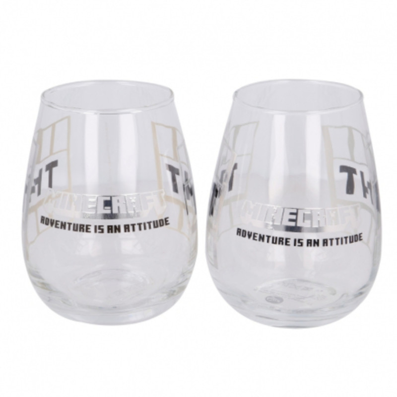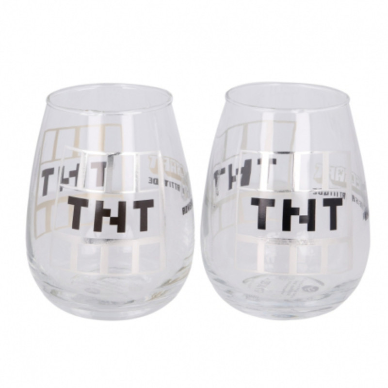 Vaso de cristal del videojuego Minecraft. El color principal es el transparente. Su capacidad es de 510 ml. Tiene un motivo grabado sobre la superficie. No es apto para lavavajillas y no se puede usar en el el microondas. Contiene dos unidades. Se entrega en caja de cartón estampada. Este producto licenciado es oficial y 100% original.